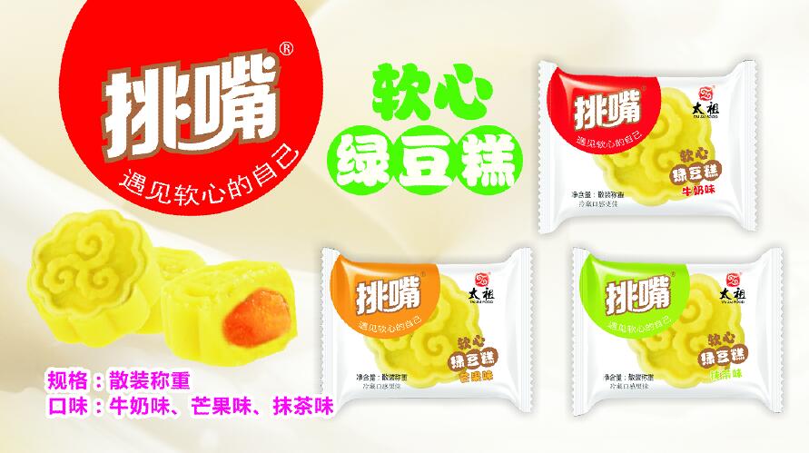 以臺灣工藝,精心挑選上好綠豆,制成松軟香醇、豆香濃郁的綠豆沙;里面包裹細膩香甜的紅豆沙餡。綿柔清香,入口即化綠豆的清爽怡人,軟心餡的甜蜜細膩,都在這塊小小的綠豆糕里。廈門太祖食品制作的綠豆糕細膩綿密,冷藏過后口感更佳,冰爽怡人,為這個炎熱的夏日帶來一絲清爽。